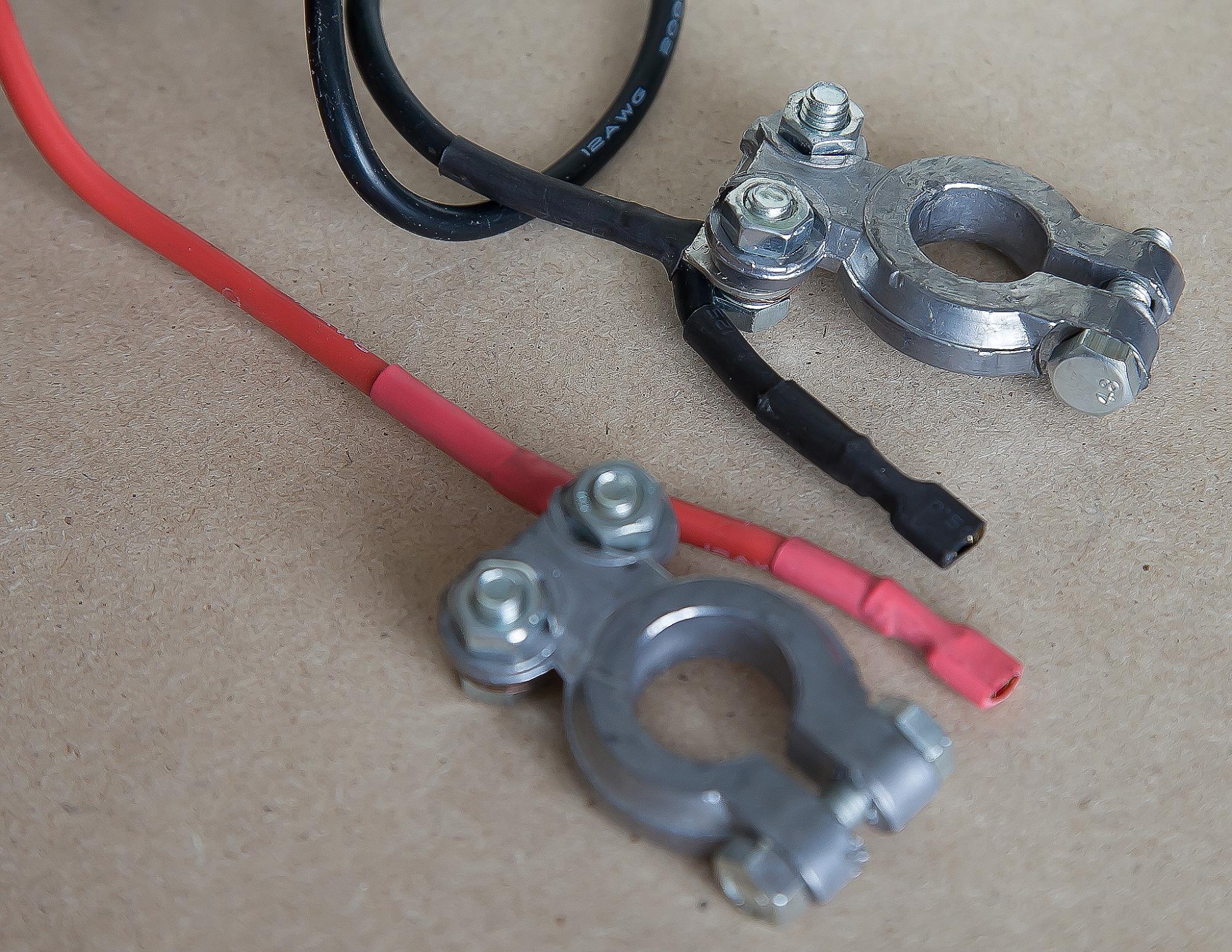 - заменены штатные провода на силиконовые 12AWG. Провода впаены в плату (как штатные) и оконечены (с обжимом и пропайкой) в кабельные наконечники и зажаты болтовым соединением к свинцовым клеммам, а на конце провода обжаты и впаены наконечники для подключения к УПС-совым аккумуляторам.