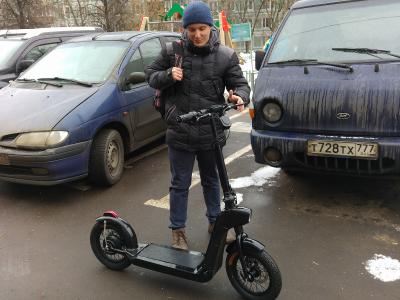 А самокат у него в руках - немаленький!