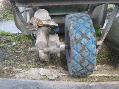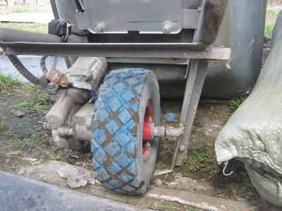 Колесо оказалось слабовато, нагрузив чрезмерно - оно сломалось, пришлось проваривать и усиливать.