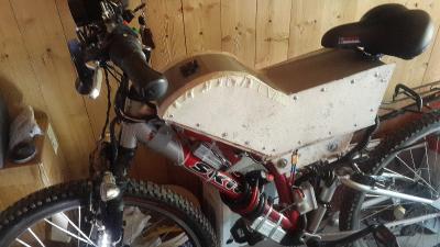 Извините, что не писал и фото нет. Короче осталось мало очень, подключить ручку газа и тормоза, припаять провода для навесухи, точнее провести два проводка и просто припаять к кучке, провести и подрубить провод от задней светотехники, батка отбалансирована, надо по бумажке соединить все и подключить бмс, припаять разъем на заряд и разряд, доклепать бокс, я специально загнутую часть, у руля не заклепал, чтобы удобнее было подсоединять провода. В понедельник надеюсь поедет, вот только чет у меня самочуствие плохое, не знаю, если будет лучше, то поедет. Еще прикол был, я когда боковинки пилил, выпилил одинаково, покрасил одинаково и потом одна то все правильно закрепилась, а другую начал прикидывать и думаю, а че покрашенная часть внутри, короче не первый раз у меня такое, да фиг с ним, пусть так будет, надо металл найти где нибудь и нормально сделать, да и пока хорошую защиту не купил, пусть будет не много шахид дизайн... и по ходу уже чуть переделываю, не много опущю верхнюю крышку короба, а те седло наверху сильно и потом хочу попробывать поездить с мотоседлом, посмотрю что удобнее