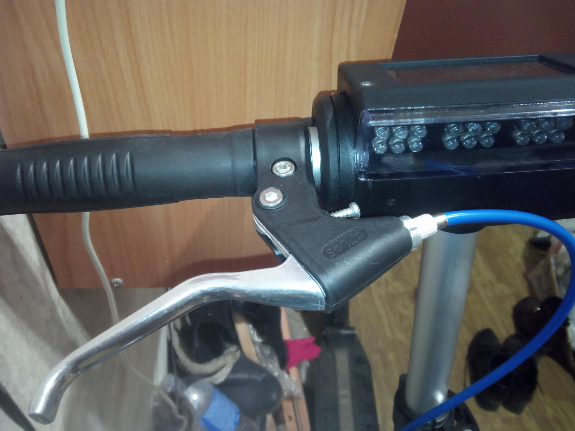 Скорее — наоборот — есть ручки тормоза (тросовые) с кнопкой — попробовать эту кнопку задействовать на включение электротормоза. У меня лежит такая, но... как раз отвод этой кнопки упирается в корпус дисплея. Пока не придумал — как решить вопрос.