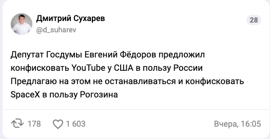 Конфисковать Ютуб в пользу Путина то есть?  :-D