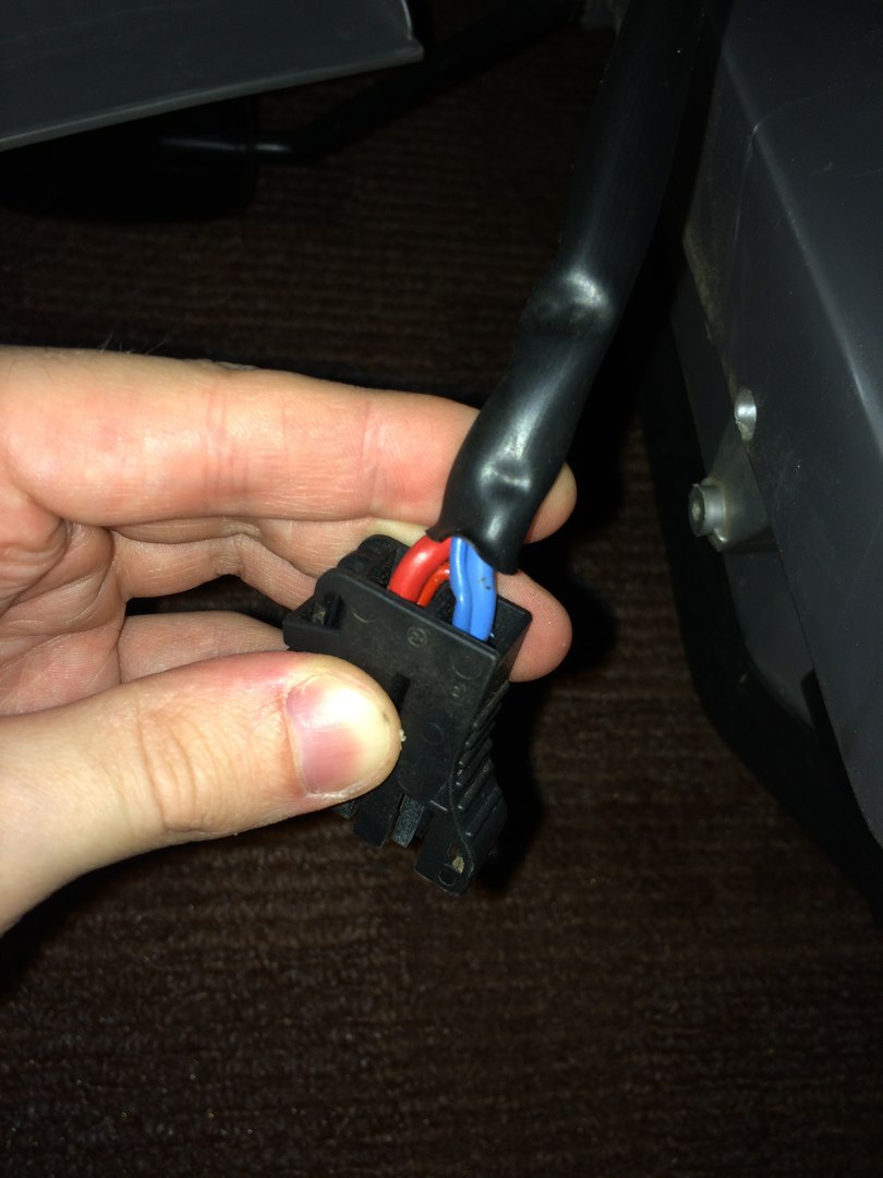 Вот разъем аккумулятора. Тонкие провода похоже, освещение.