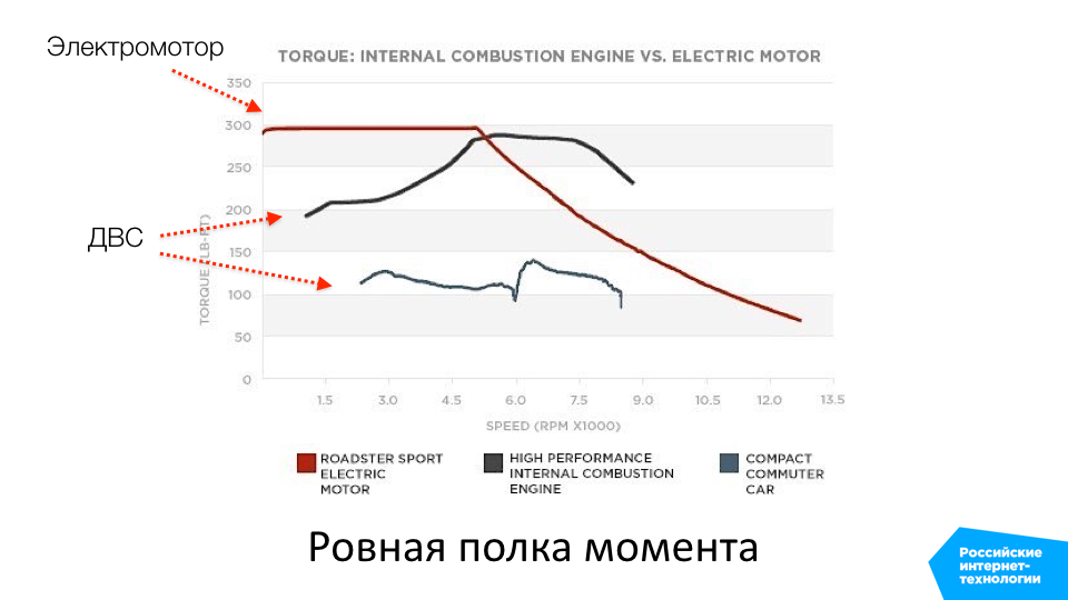 Слайд из перезентации 1-й Теслы 2008 чтоли года. Ну да, за 8 лет турбомоторы стали быстрее выходить на полку момента.
