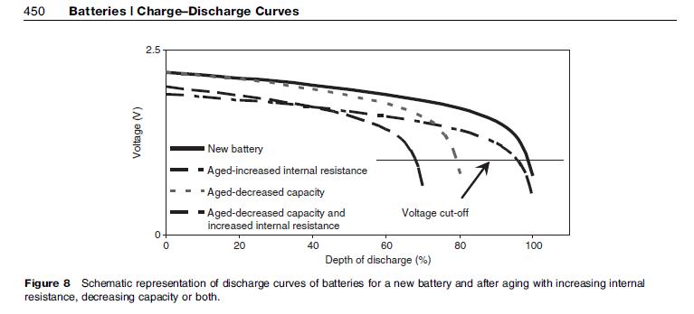 Да этот график не о чем......если  шкала напражений линейная , то по нему батареи с уменьшеной есмостью имеют полный заряд при напряжении 12 В и с этого напряжения разряжаются.