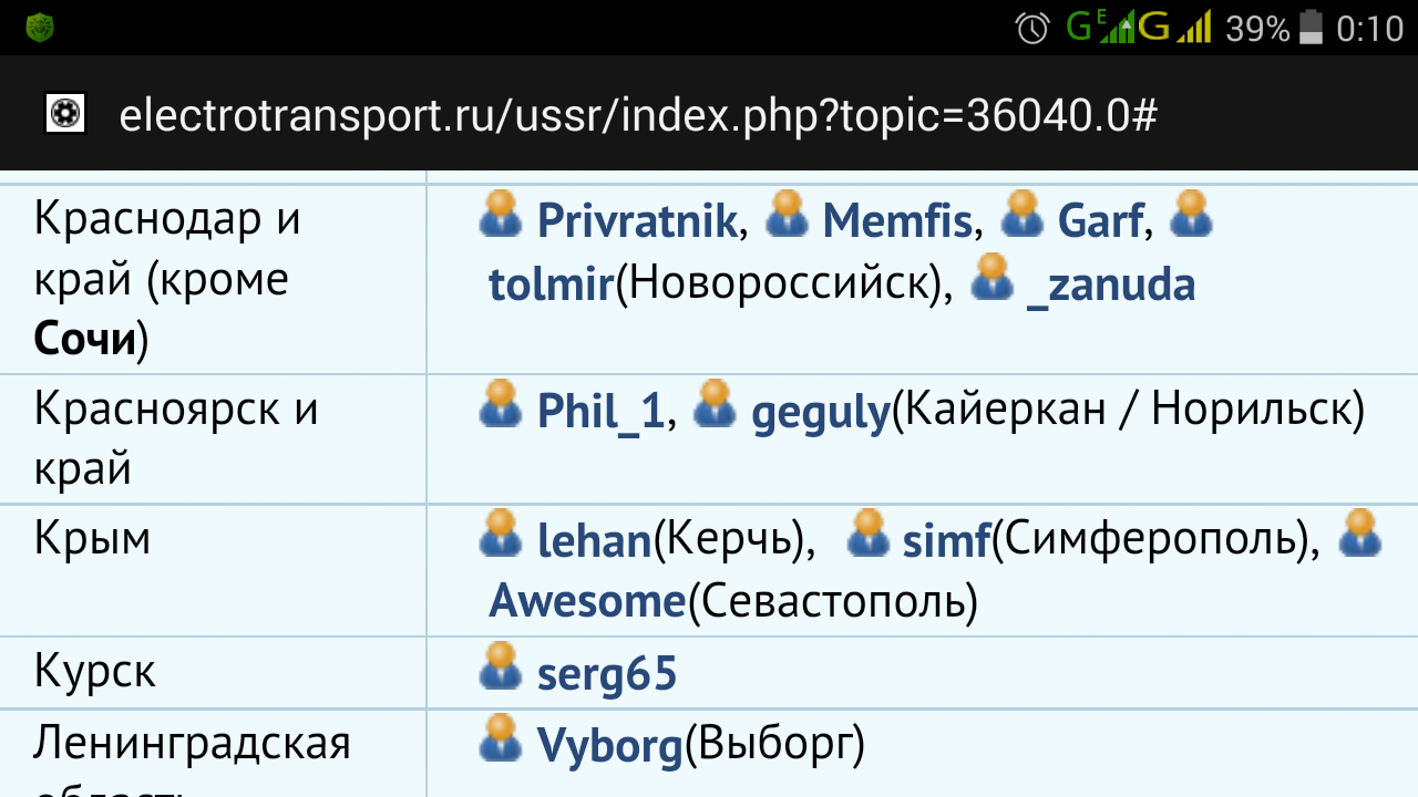... Если таких форумчан набирается более, чем один и они просят, то их населенный пункт выделяется в отдельную строчку ...