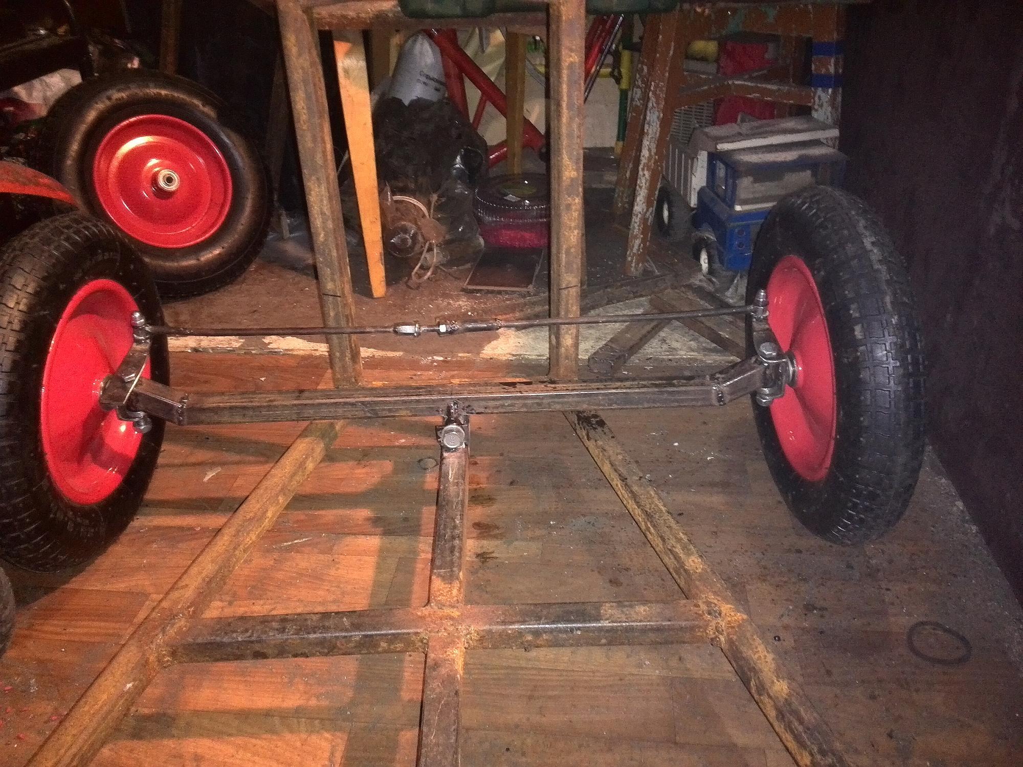 Передняя подвеска (балка) будет через сайлент-блок закреплена в центре к кузову, то есть получается принцип маятника, будем обкатывать так, уже нет времени возиться с полноценной ходовкой (если что зимой переделаю).