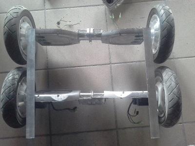 устройство достаточно простое для исполнения необходимо два гироскутера. Колеса должны крутиться в одну сторону как нижние так и верхние, нижние должны притормаживать, пока все.