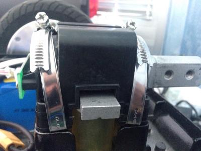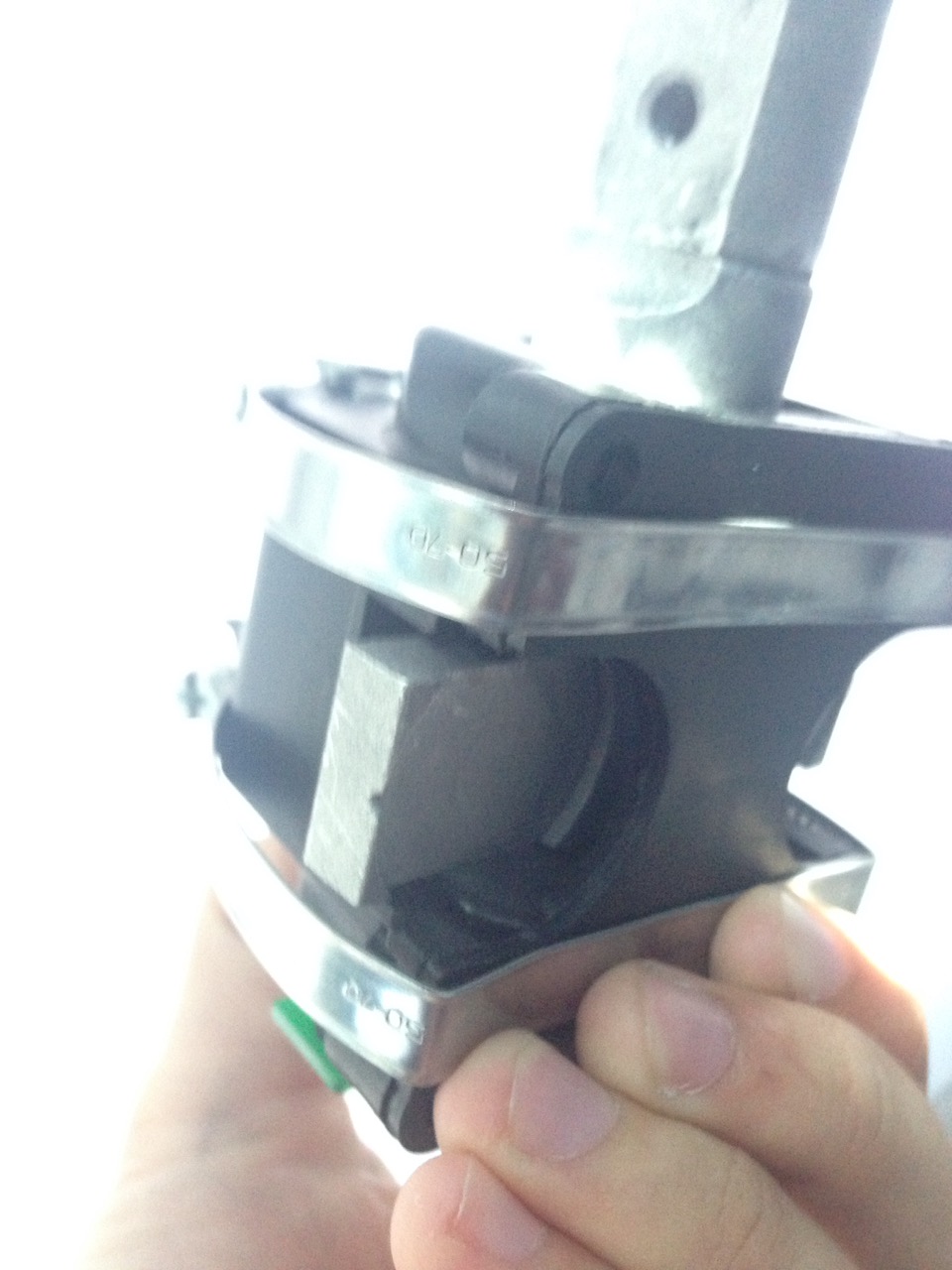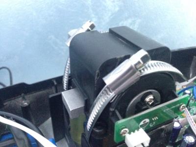 В общем починил. Все работает. Небольшой фото отчет, там вроде все ясно) Единственный совет, что бы шляпка от хомута была на углу пластиковой детали (не сверху), таким образом она не будет упираться в пластик.