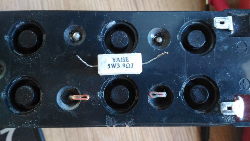 Под нагрузкой 22 ватта выявляю саму сильную банку исходя из последнего ктц выбрана нагрузка 3,9 Ом = 0,48-0,5а ток.