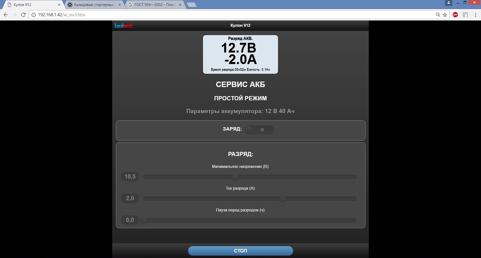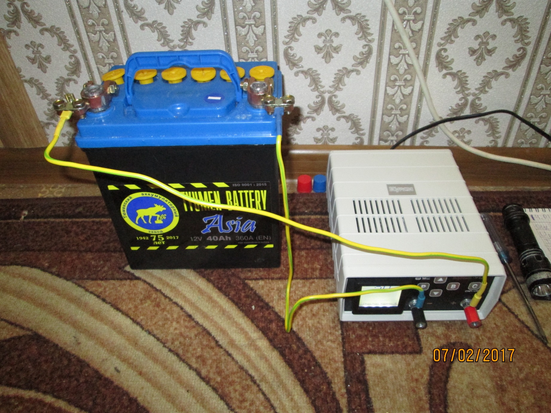 Решил получить кривую разряда АКБ Тюмень-азия 40 Ач, изготовлена 11.2016.