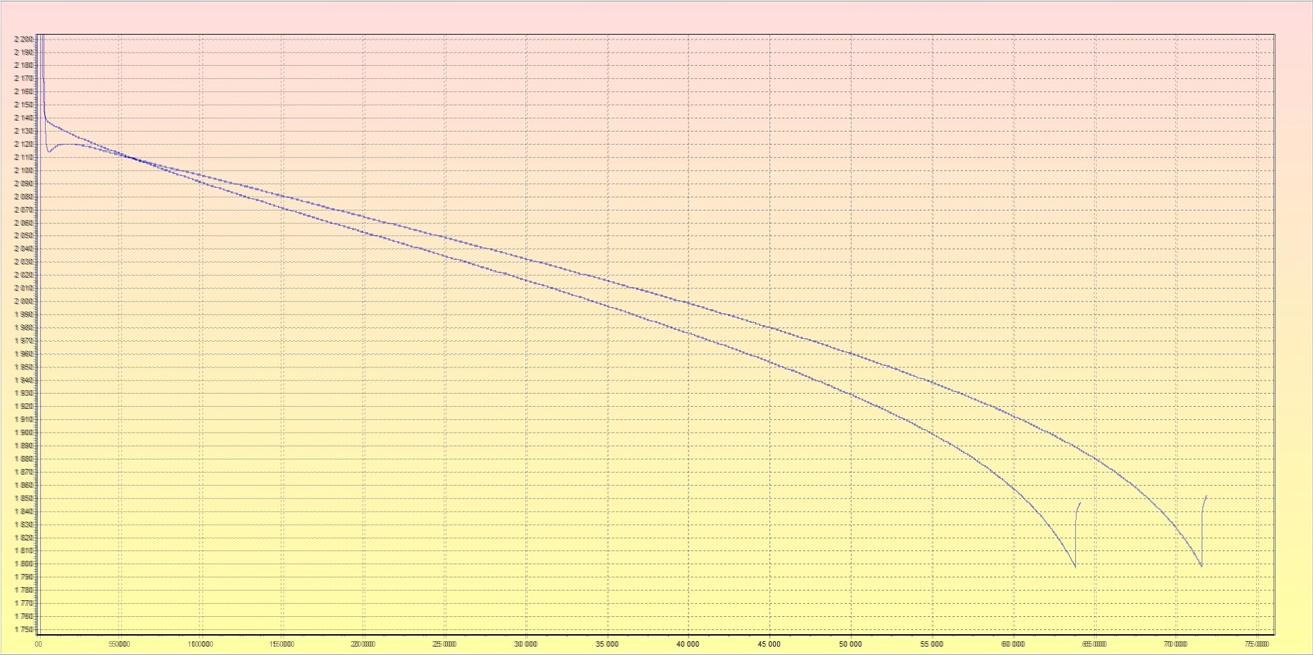 Какую сторону принять будет правильно ( судя только о кривой, безотносительно метода заряда ), например, мы не продолжили разряд далее, а начальный участок графика у нас есть? То есть, например, мы ещё не знаем какую емкость ( или мощность ) мы получим?