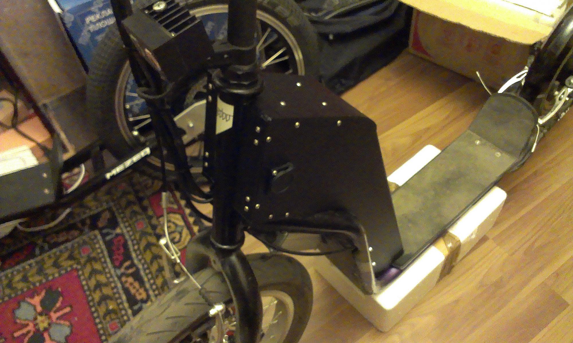 Всё было собрано на самокате без сверления рамы, на пробу.