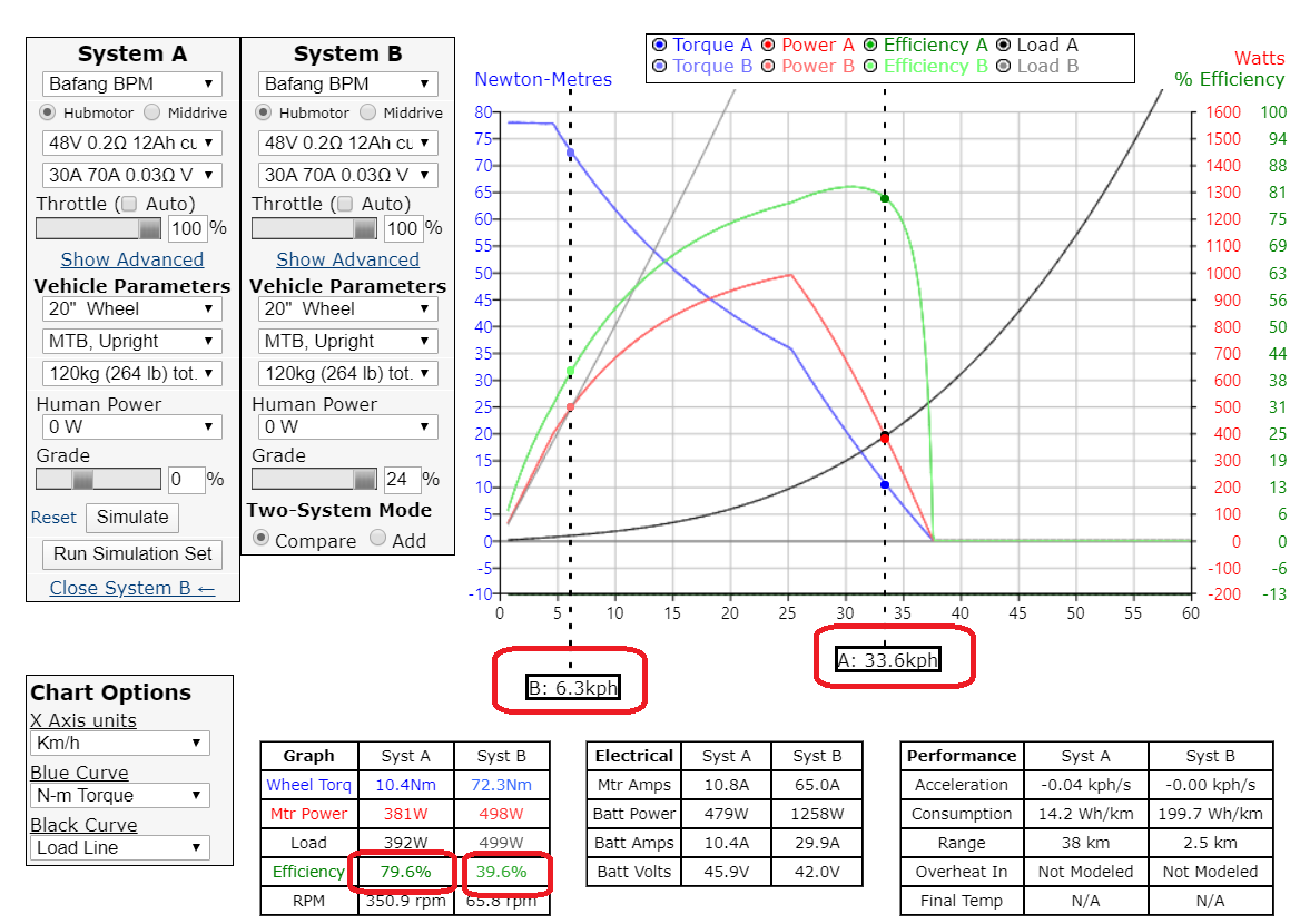https://www.ebikes.ca/tools/simulator.html?bopen=true&motor=MBPM&batt=cust_48_0.2_12&wheel=20i&mass=120&hp=0&throt=100&motor_b=MBPM&batt_b=cust_48_0.2_12&wheel_b=20i&mass_b=120&hp_b=0&throt_b=100&k=1&k_b=1&grade=0&grade_b=24&cont=cust_30_70_0.03_V&cont_b=cust_30_70_0.03_V