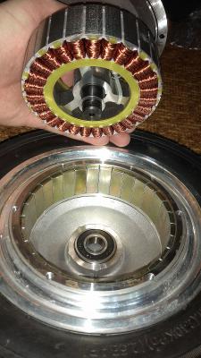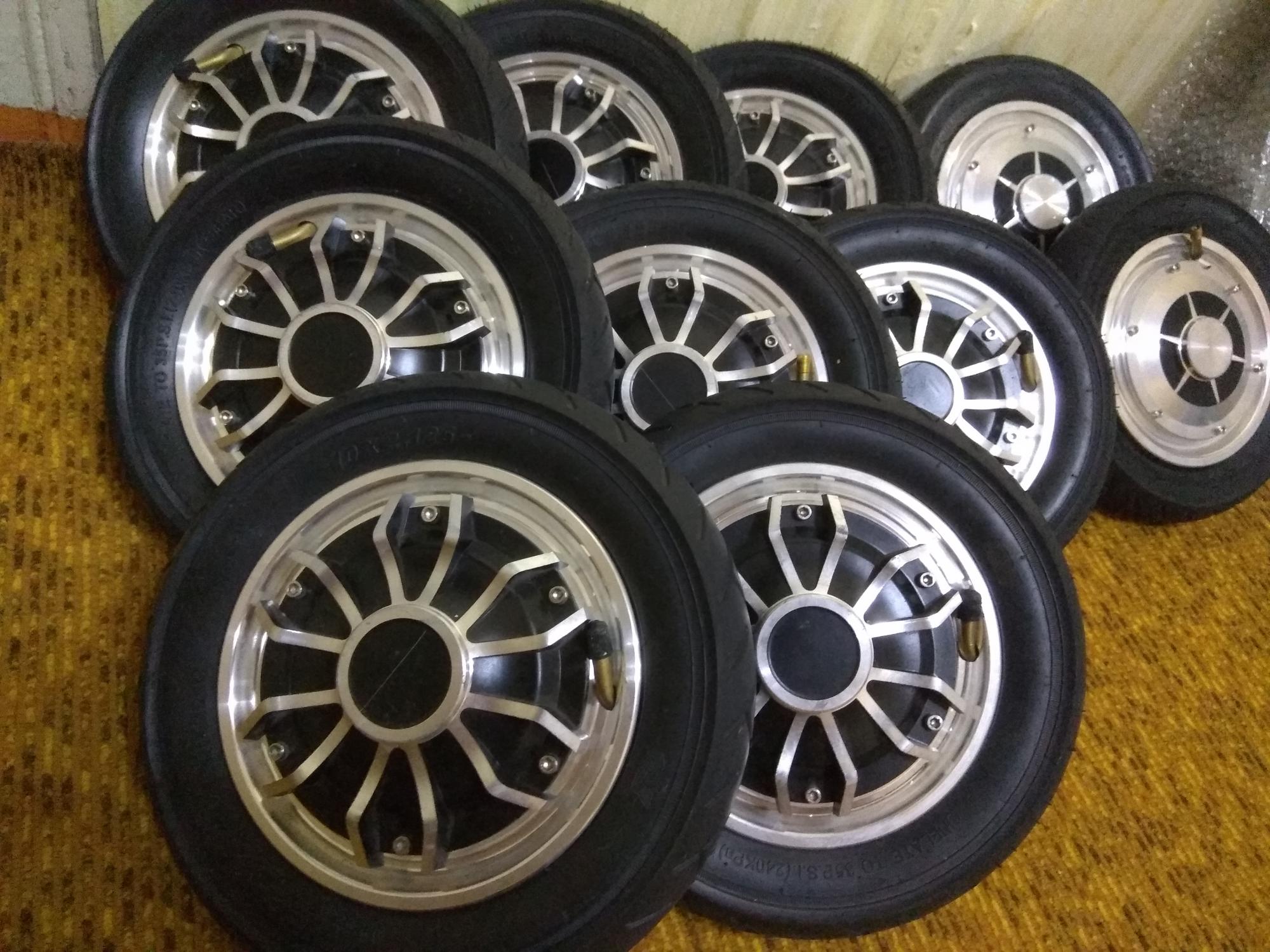 Я не переделываю гироскутерные колеса внутри, ищу сразу с нормальными магнитами и железом, попадаются и слабенькие, идут на детский транспорт. Снаружи, иногда, дорабатываю под нужный размер на токарном станочке. Одна из последних работ по обуванию 6-8" моторколеса в картовую резину, получилось очень красиво. Кстати диаметр 6" и 8" мотора абсолютно одинаковы [user]Pau62[/user], 126 мм, это посадочный размер картовой резины, но натянуть ее на этот размер не получится, нужно проточить моторколесо до 124 мм, вот тогда, с мыльцем, заходит тип топ.