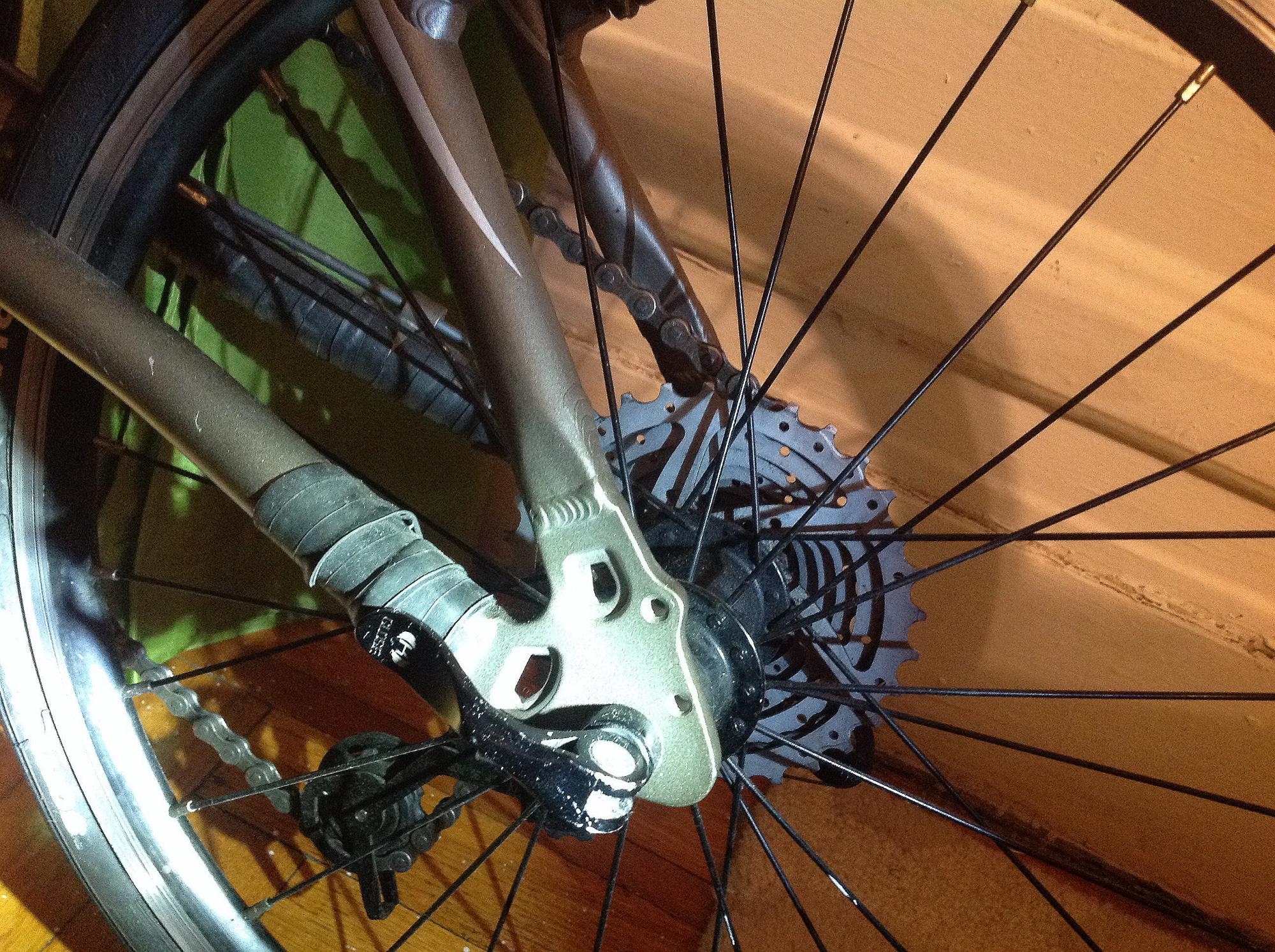Теперь задние наклонные перья уже повыгибали пластины, держащие колёса. Выравнивать я их не стал, купил себе за 10000 титан бугай. Буду переспицовывать переднее колесо.