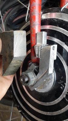 Тут вообще без разницы, в какую направлено. Нууу вооообще. Задача - не дать оси в усилке провернуться, даже если допустим гайка ослабла, что вряд ли. Она и не провернется - стальная часть соединена с нержавейным рычагом вмертвую, а тот вмертвую, 2 болтами, притянут к базе. Вектор же сдвига что вдоль нее назад направлен, что вперед - без разницы. Тем и хорошо, и металл рычага может быть не слишком жирным.