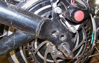Мой новый левый усилок для стальной пружинной вилки. Малая деталь сталь 5 мм., большая нержавейка около 2,5, крепится за оба уха базы калипера.