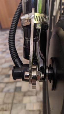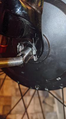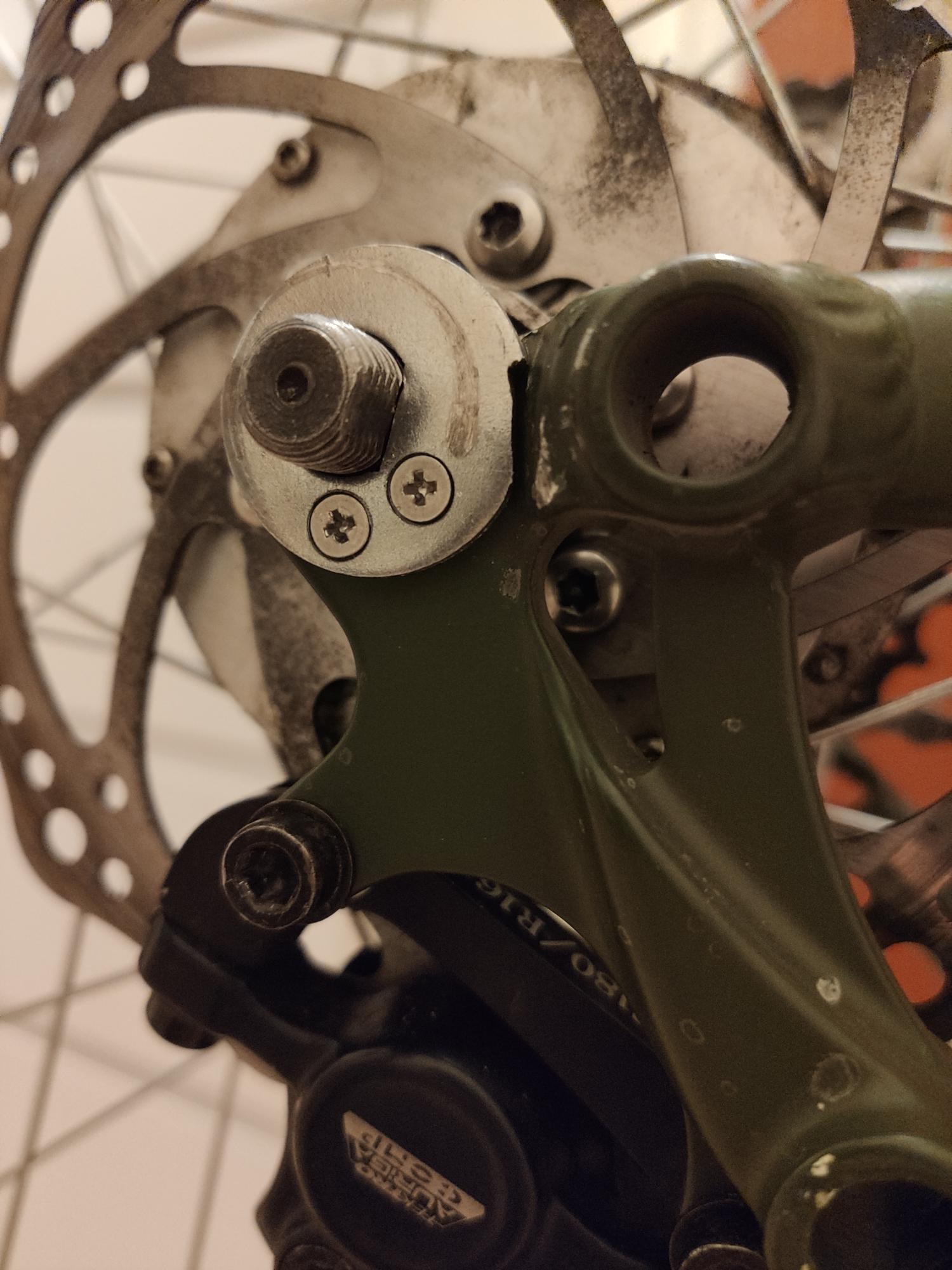 Поразмыслив на тему физических процессов происходящих в дропауте передней вилки с моторо колесом - там ведь не только скручивание оси в обратнуу сторону, там еще момент, который тянет вперед весь велосипед - и эта нагрузка также идет на переднюю лапку дропаута. И в этом плане усилители - которые только накладываются на переднюю часть вилки - не помогут. Т.е. они защищают от прокрутки оси в обратку, но момент тяги вперед идет на передние лапки дропаута вилки.