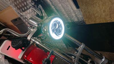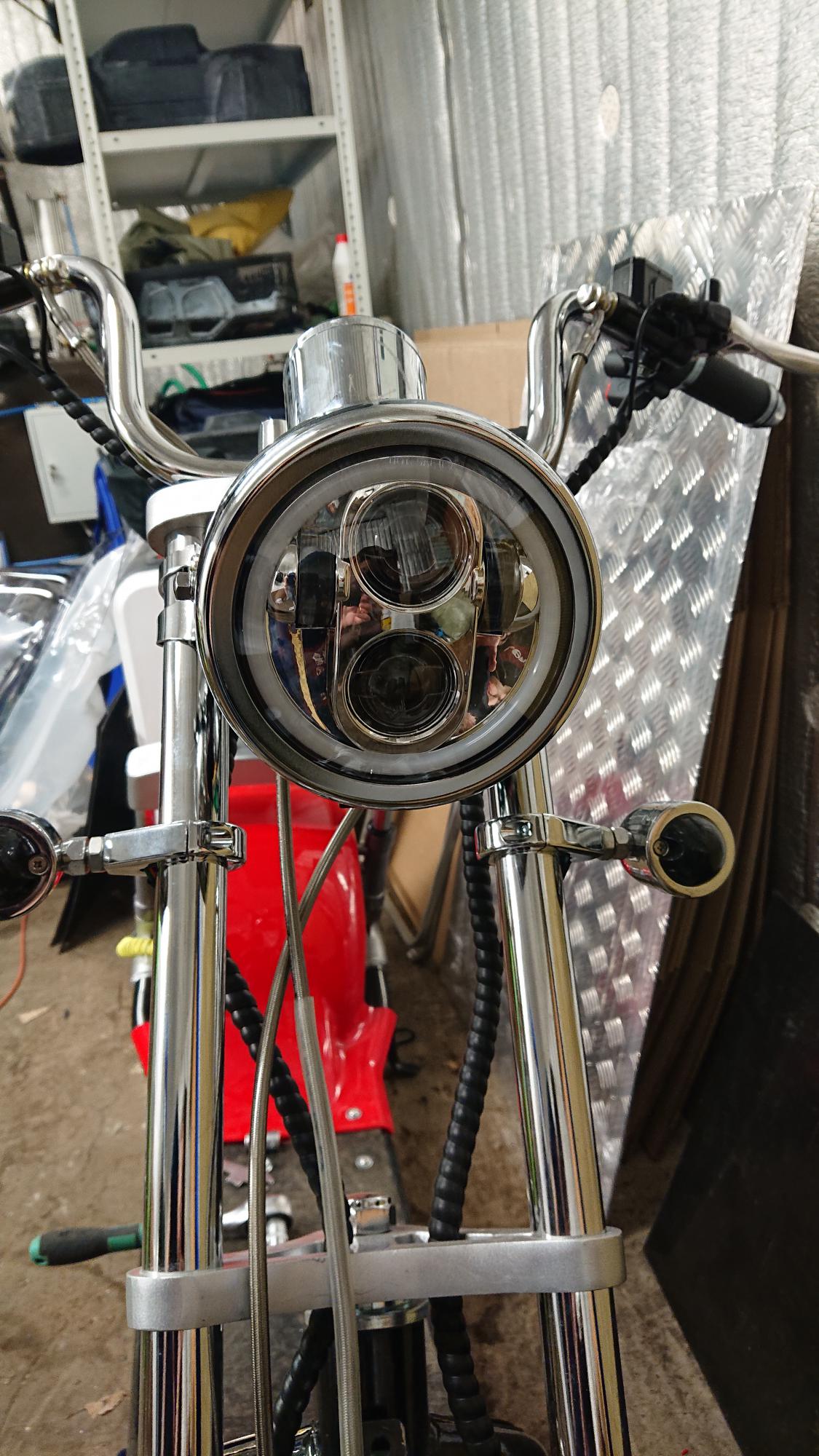 Я тоже фару норм прикрутил (led: dlr + ближний + дальний; 5,75 дюйма диаметр; 45w ). Корпус пришлось под нее новый покупать. И сидушку заодно другую. Пока наживил, думаю как оптимизировать конструкцию под нее.