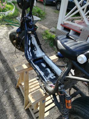 1) Расколбас колёс. Проверяется заваливанием самоката на бок и "газованием". Можно "пузом" поставить на канистру-покрышку-ящик, вывесить и смотреть насколько виляет или радиально мотает баллон.