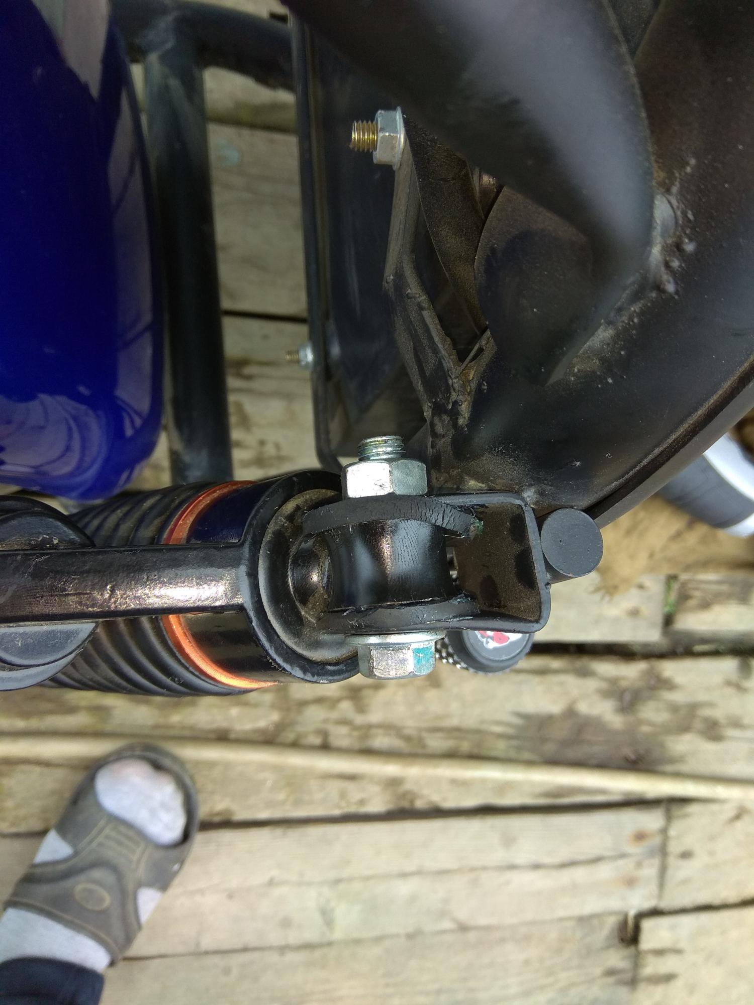 В общем загерметил все дырки и прорези.Проблему с люфтос руля решил просто.Подложил шайбу 1'2 мм под гайку и закрутил,шток вращается вместе с гайкой поэтому пуль не клинит.От тряски по нашим дорогам разболталась амортизаторы,вырезал из резиновых сальников шайбы и подложил по бокам от ушей крепления амортизаторов.Ничего не люфтит не гремит,я доволен.