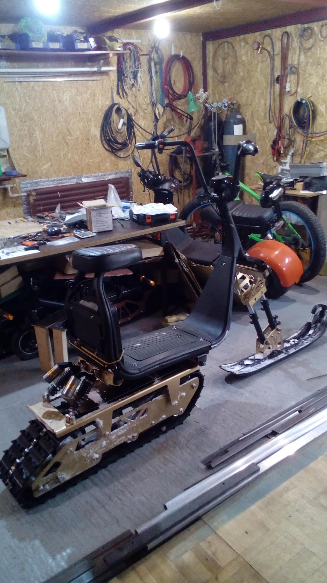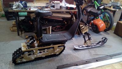Высота обусловлена гусянкой и глубиной погружения в снег.Будет низко,по колено в снегу буду ехать.Высота норм.С такой высотой по снегу выше колена идет хорошо.Келли пока в дороге вместе с мотором QS.Пока стоит штатный контроллер,раскрученый до 3квт.По Келли отпишусь,как поставлю.Самому интересно.