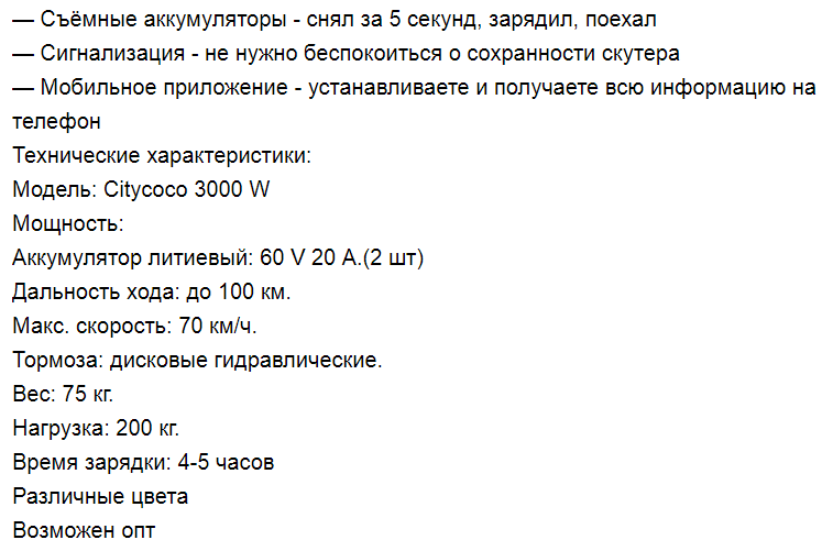 Сколько он стоит?Параметры с китайцев списаны.Всегда завышены.Колесо 8" 3квт существует,но надо смотреть контр.Как правило.ставят меньший.А с 2мя батками по 20ач,думаю,км.60-70 проедет,по ровной дороге и с не большой скоростью.Заряжаться,конечно будут не 5с,а как положено 8-10!Короче,если контр стоит 3квт и 2 батки по 20ач(лучше взвесить)6.5-7.5кг!,то можно брать.Вопрос цены