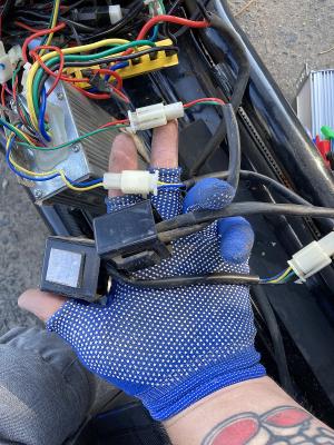Приветствую ребята, не могу подключить контроллер. купил в китае контроллер для своего ситика, а подключить не хватает соображалки, может кто помочь? Подключить смог силовые провода, провода датчиков холла, остальное не смог. провода разных цветов и у меня к контроллеру подключаются два каких-то устройства,внешне похожи на реле. вот их не смог сообразить куда подключить и что вообще это такое... После того что подключил стало всё работать на ситике (свет , стоп сигнал включается при нажатии рычага тормоза, сигнал, поворотники, поворот ключа включает ситик, всё функционирует, но колесо не вращается, не реагирует на газ) может кто знает где-нибудь на севере Москвы есть мастерская,куда я мог бы прикатить на ситике, чтобы подключили контроллер?