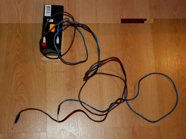 В этом методе меня привлекает простота и дешевизна. Рублей 800 за акб, столько же за з/у для него, плюс несколько метров провода.