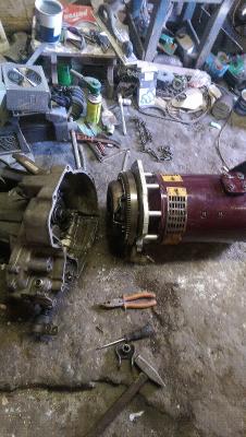 Сцепление решил оставить. Для крепления маховика -выточен переходник на вал мотора.