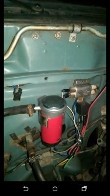 Переключение ОВ задумывалось как включение повышенной передачи , с ним еще не экпериментировал. Сейчас 4 ОВ скоммутированы последовательно - как было штатно для этого мотора. Оставив сцепление появилась возможность ездить без контроллера! Меньше всего токи получаются когда трогаюсь с первой передачи и поочередно переключаась до 5й. Подъемы в горку 1,2,3 в зависимости от горки. Ток на разгонах и подъемах до 150 а, по прямой до 100а. Вакумный насос от воздушных звуковых сигналов куплен в ближайшем автомагазине. Подключен через реле и сопротивление. Работает насос шумно -думаю возможно заменю его на что-то более тихое,его пришлось доработать запрессовав алюминиевую трубку в воздухозаборное отверстие.