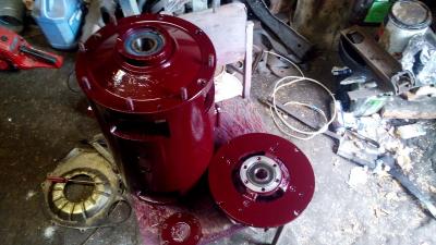 Мотор перебран, роликовый открытый подшипник заменен на шариковый закрытый. Выведены контакты с обмотки возбуждения для возможности подключения катушек 2 по 2