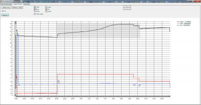 После нажатия кнопки Open Log и выбора файла лога, программа отрисовывает требуемые графы на поле графиков  и подписывает их в соответствии с именем чекбокса.