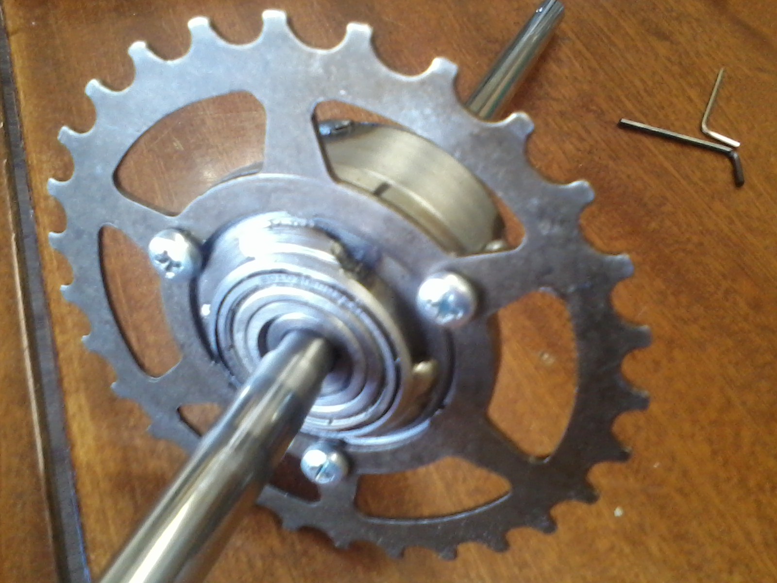 6.Звезды от велосипеда, купил кассету в сборе- 450 руб, разобрал, фривил отдельно, звезды отдельно, большие на 28, 24, 21 зуб просверлил для крепления к дифу, для последующей "игры" с ПЧ.