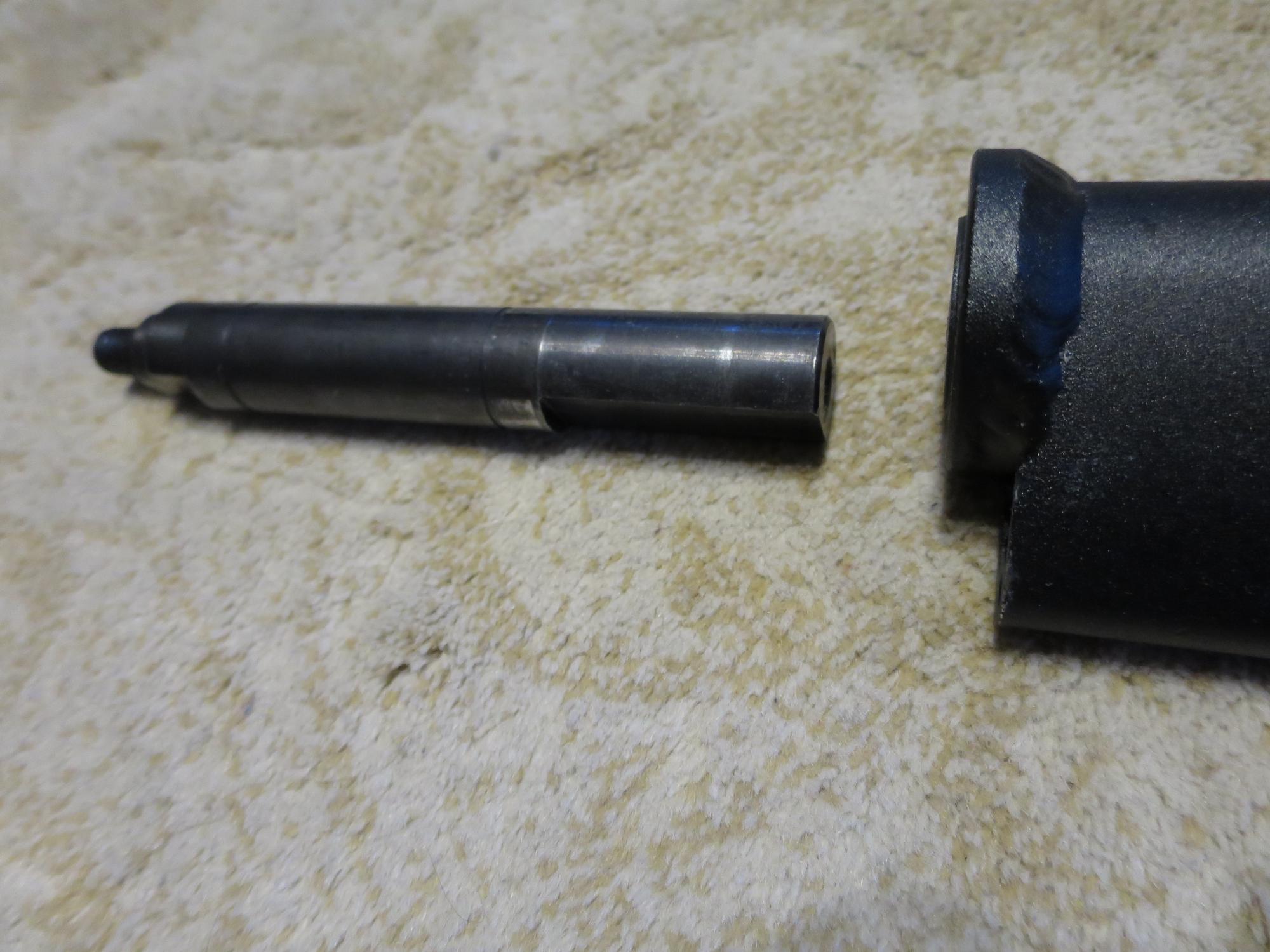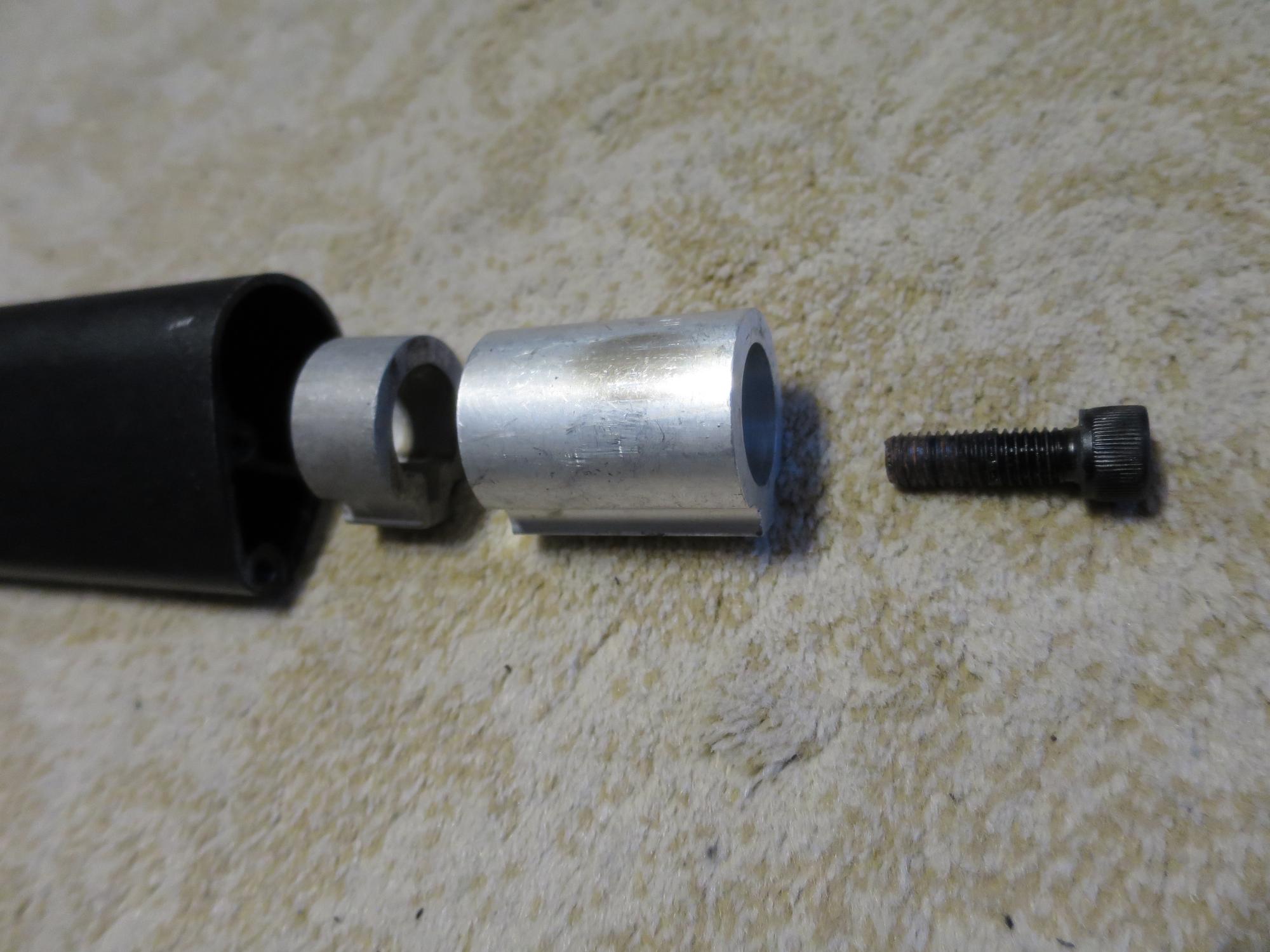 Разбирается при откручивании одного из этих болтов , если откручиваем нижний то вытягиваем стойку вверх в месте со стальным штырем, если шестигранник то вытягиваем без стального штыря который вытягивается вместе с вилкой вниз. вообщем штырь без алюминек проходит в стойку с любой стороны.
