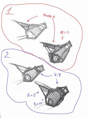 Ну а серьезно, то если это проэкт дизайнера, то начинать надо точно не с рамы, тут надо вжится в течение какого нибудь стиля, и фантасмагорить по полной вплетая в фантазии реальное предназначение байка. А потом в дизайн подключать инженера с его сопроматами, приткнуть мотор (вплоть до того что выпереть его наружу и затюнить ему радиатор в общем стиле) и раскидывать батарею по потрохам (форма которой может быть любой, хоть модульной). .