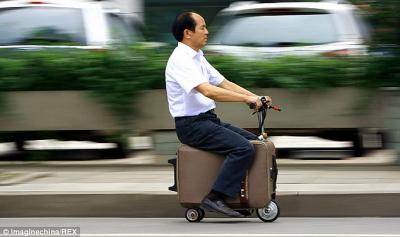 такая штука уже была в сети - бабушкина сумка на колесиках и откидное третье на площадке а-ля скейт подвес, просто самокат или электро,  мне так больше нравится
