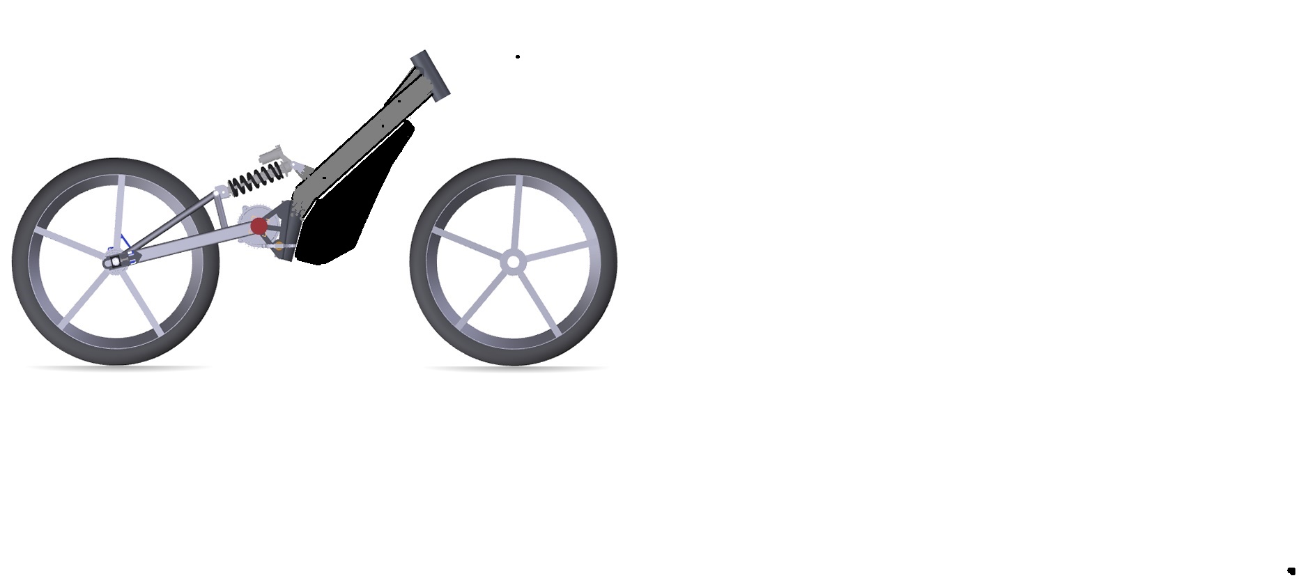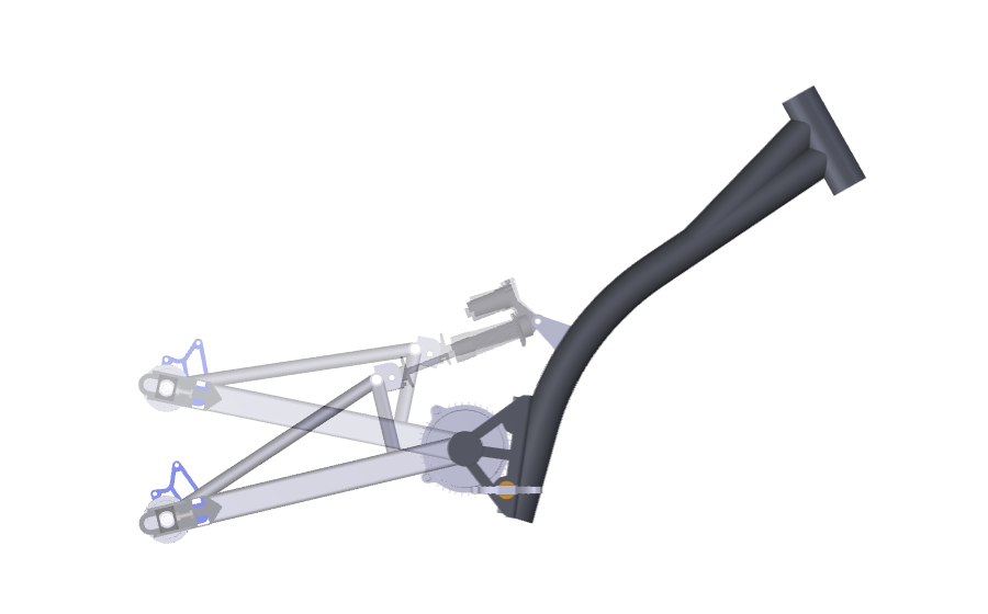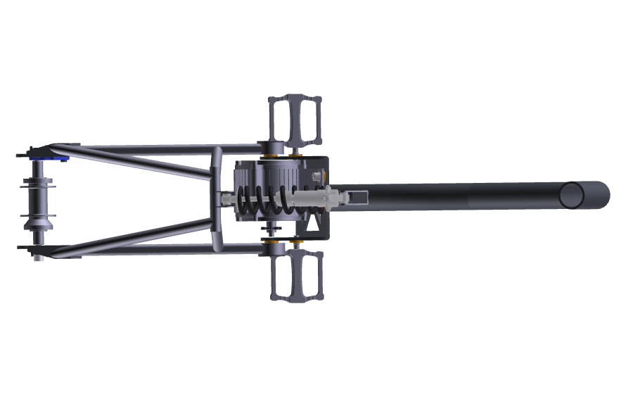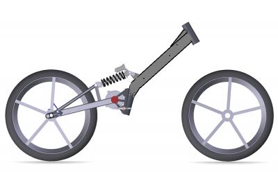 Тут я немножко сместил точки посадки амортизатора, заднюю ближе к колесу, переднюю опустил вдоль трубы.