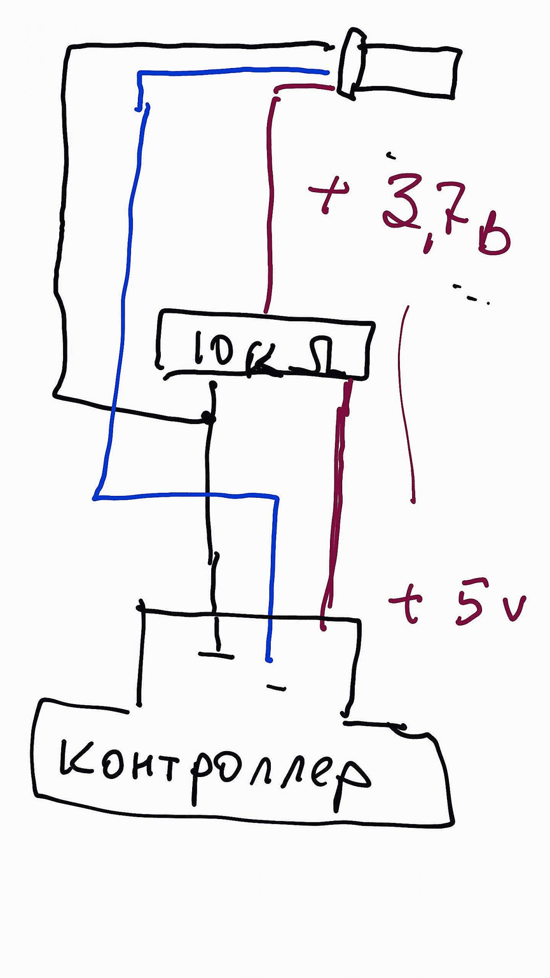 Вот, набросал на своем смарте схему, ... сверху ручка газа, думаю, достаточно придушить до 3,7В.