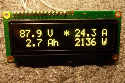 Под ним - израсходованная энергия батареи (до 99.9Ah). Справа- текущий ток батареи и потребляемая мощность.