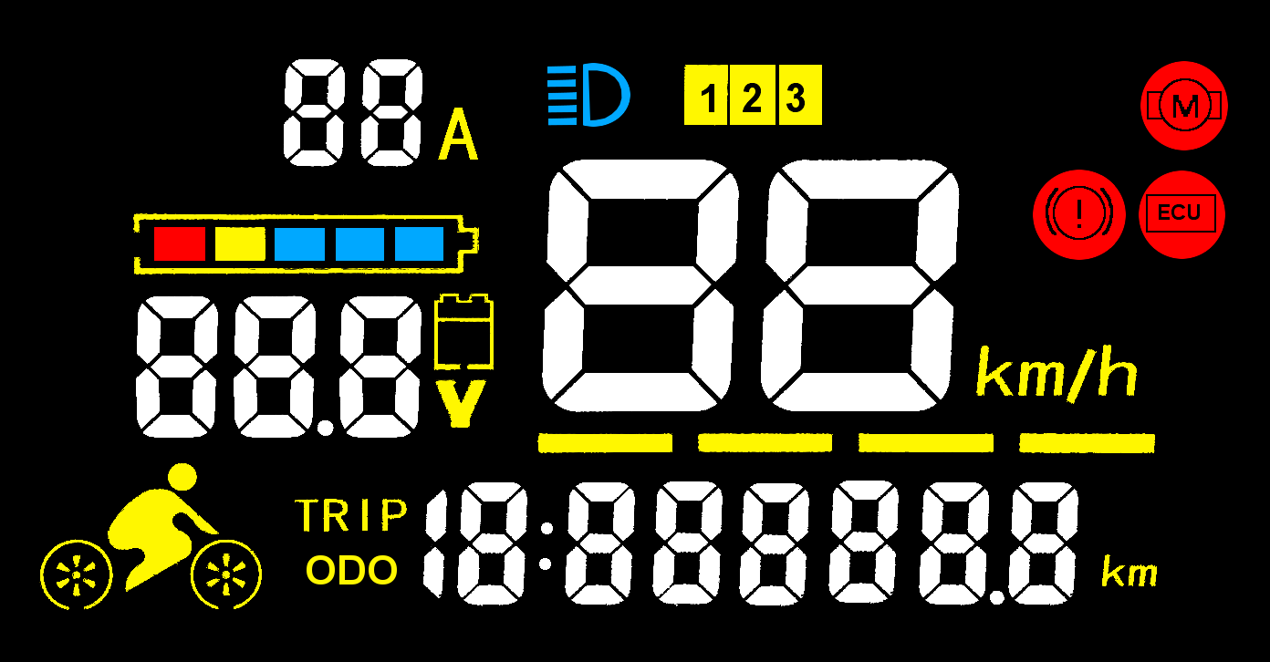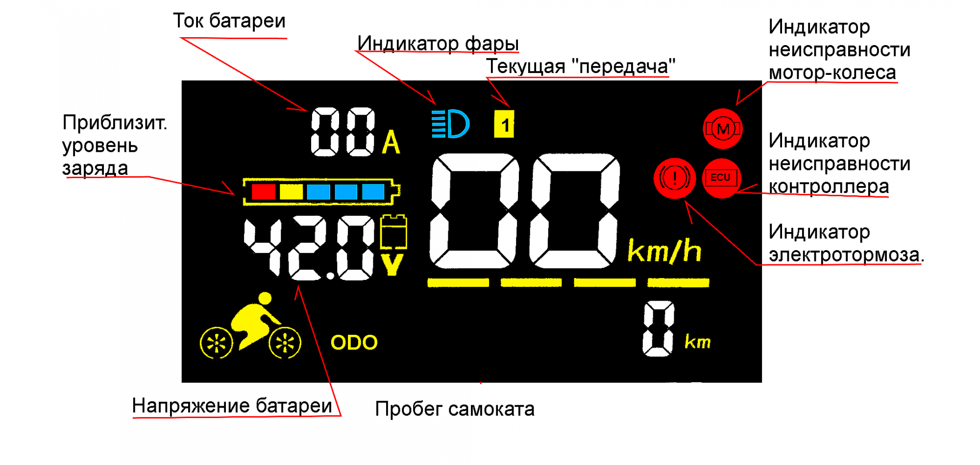 Вместо скорости у нас отображается номер настройки, вместо пробега - значение настройки.
