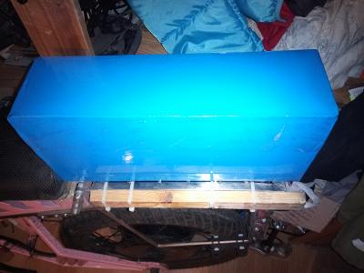 Тут главная загвоздка, как крепить. Думаю просверлить дыр в днище ящика, и мощными пластиковыми стяжками притянуть к багажнику, вместе с батареей.  :exactly: