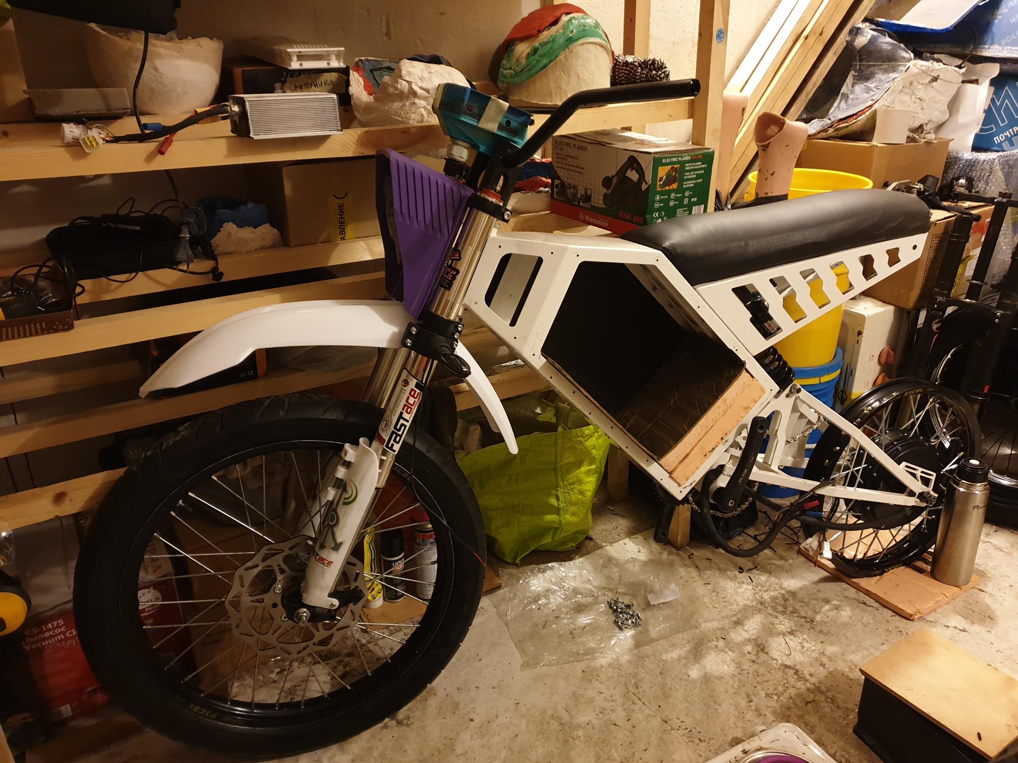 мои байки: 1) лайток редукторник 250Вт (пик до 900Вт), 20-30кг, скорость до 70км/ч; 2) универсал, ригид, задний МК 1.5кВт (пик до 8кВт), масса ~45кг, скорость до 85км/ч; 3) розовый телепортатор, задний МК qs273 4кВт (пик до 21 кВт), под 100кг, скорость до 130км/ч; 4) хардтейл, миникрошка, до 11кВт, до 100км/ч