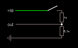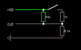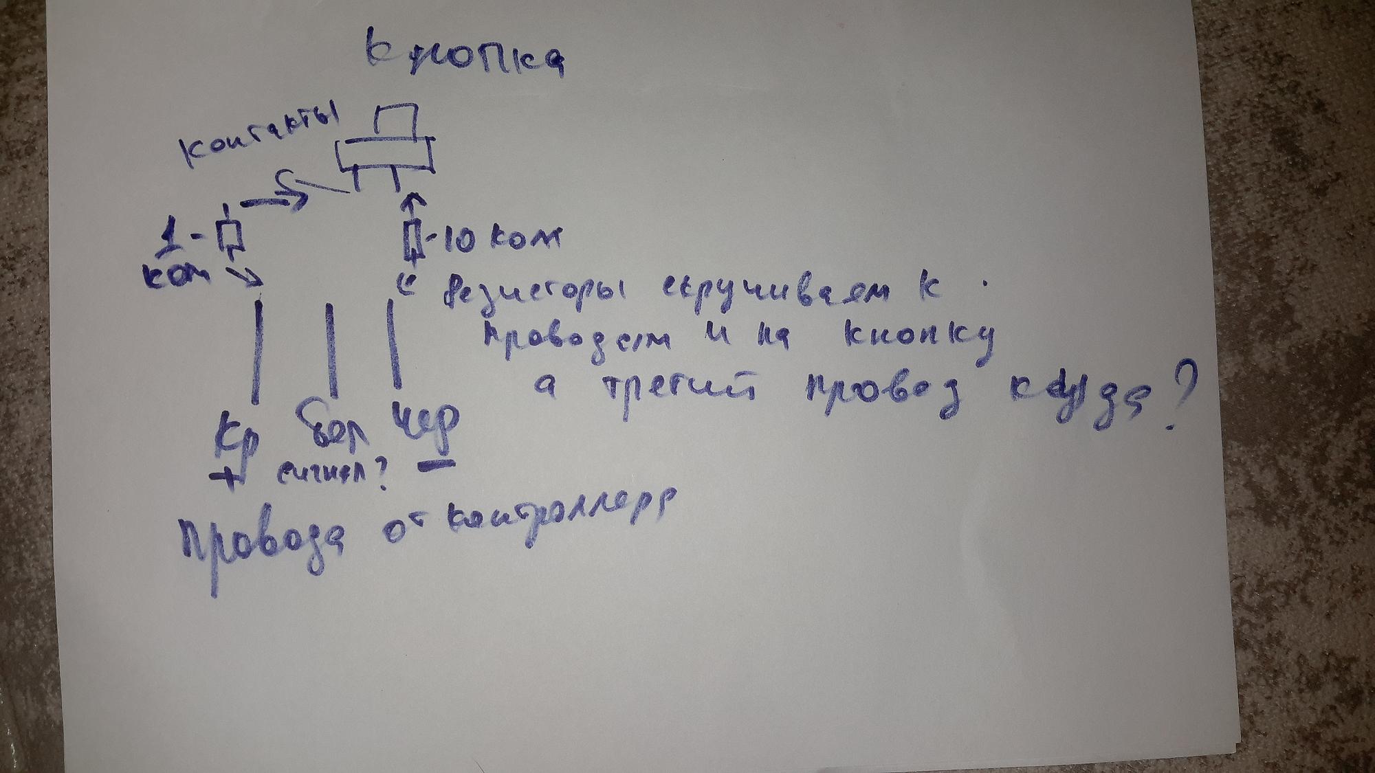 [user]Didjest[/user], Out - это выход, белый или зелёный провод, земля - это чёрный. Можно другие номиналы подобрать, главное, чтобы было соотношение 1:5. Но не сильно большие, в контроллере может быть какая-нибудь подтяжка, надо проверять.