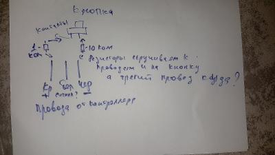 Кнопку на разрыв я ставлю между + и резистрором. Out это минус, земля это белый (третий) провод все верно?