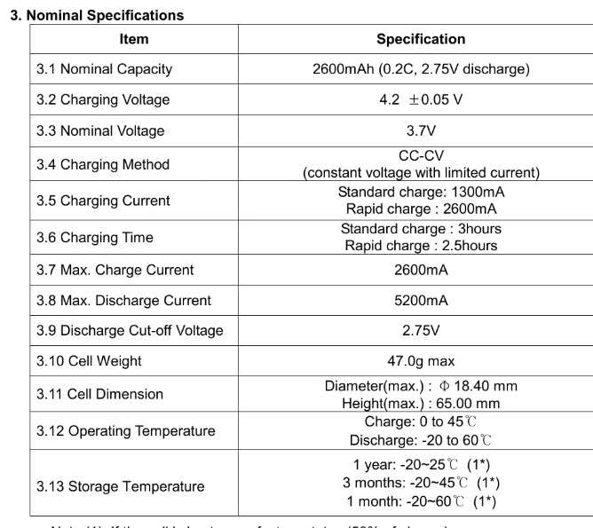 Смотрим даташит, видим общая ёмкость 2600, ток заряда 1300 т.е. 0.5С.
