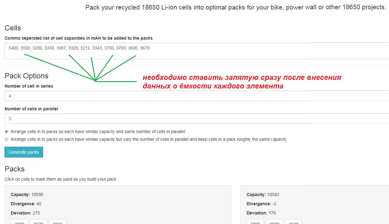 На образцовом фото конфиг 14S3P, а некоторые ребята вообще делают 1P (в таком случае им даже и программа такая не нужна).