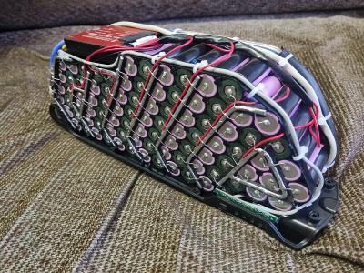 Первой батарее 13s 5p (усы из кабельной, кабель KWO, луженой земляной жилы диаметр 0,4мм; шины медь 4 кв.мм) второй год, пробег 1900км: