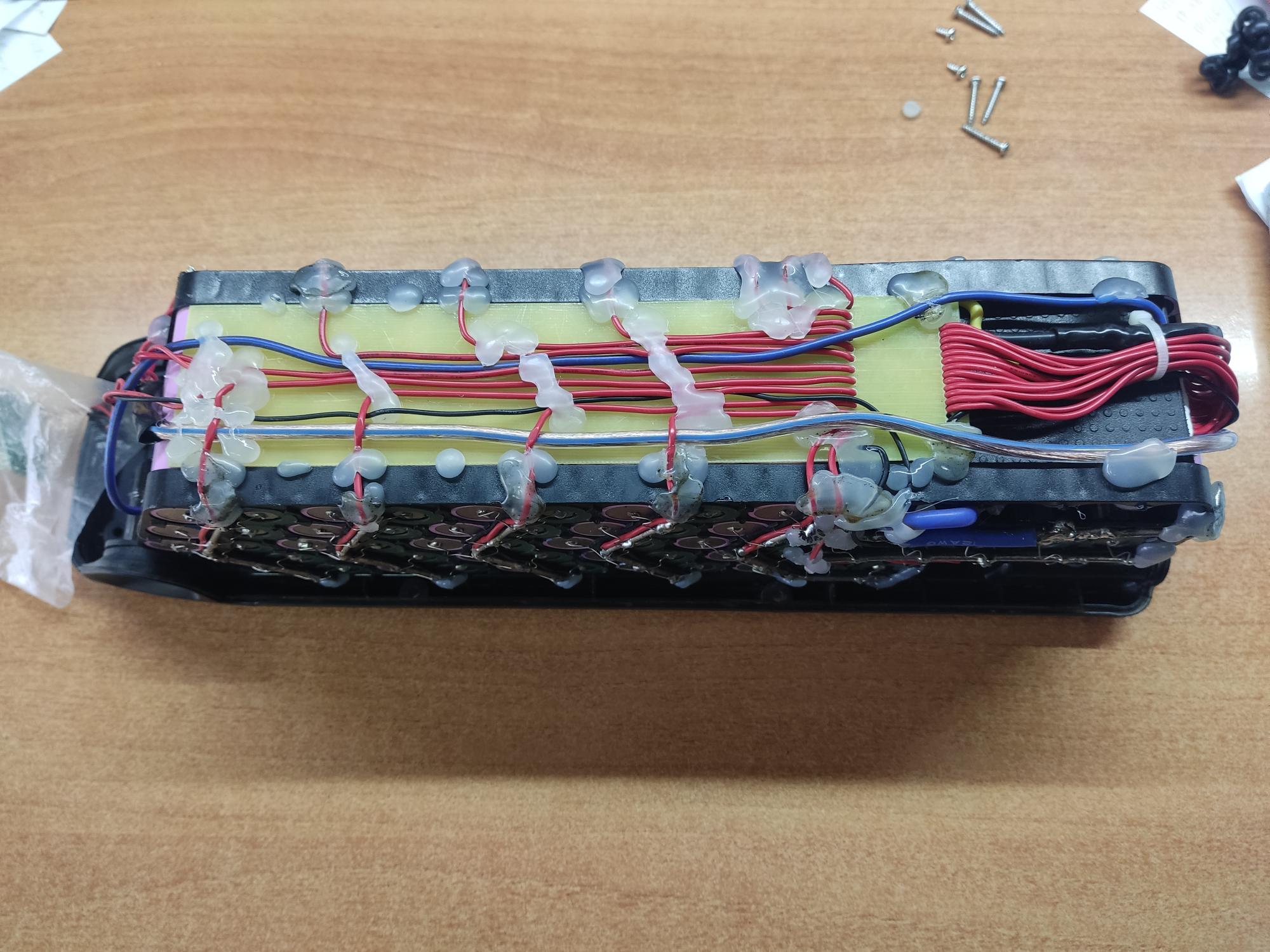 Вторая батарея 13s 7p (усы из луженой импортной телефонной кроссировки 0,5мм; шины медь 6 кв.мм) практически готова: